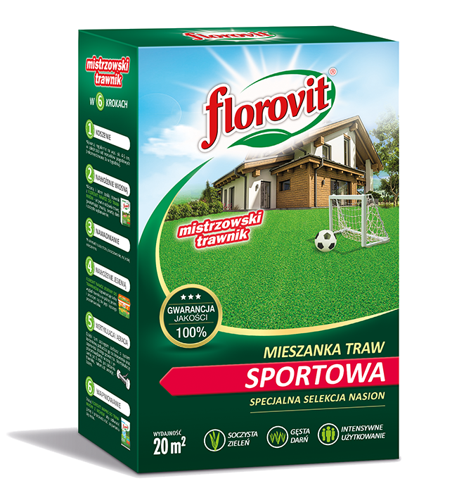 Florovit MIESZANKA TRAW SPORTOWA świetnie sprawdzi się na przydomowych trawnikach, placach zabaw, boiskach, terenach sportowych i innych trawnikach narażonych na uszkodzenia mechaniczne. Specjalna selekcja nasion traw gazonowych, dopasowanych do polskich warunków klimatycznych, gwarantuje uzyskanie pięknego trawnika o wysokich walorach estetycznych i użytkowych, szybko regenerującego się po skoszeniu oraz wysokiej mrozoodporności.