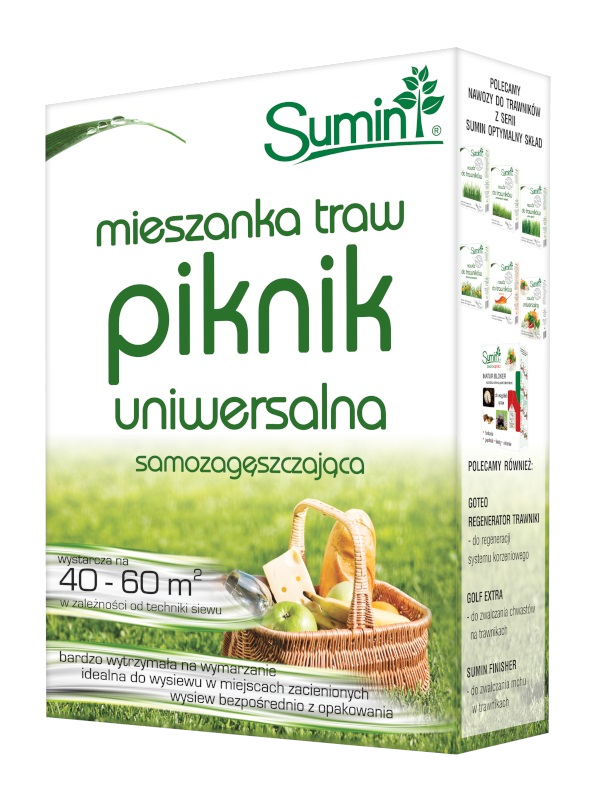 Trawa samozagęszczająca uniwersalna Piknik. Znakomicie nadaje się na tereny rekreacyjne niezbyt intensywnie użytkowane, na trawniki parkowe, także na miejsca zacienione. Tworzy piękny i trwały trawnik o żywo zielonej barwie, od wczesnej wiosny do późnej jesieni. Jest odporna na deptanie. Stanowi doskonałą kompozycję wraz z roślinami ozdobnymi. Toleruje krótkotrwałe niedobory wilgoci w podłożu, nadaje się do wysiewu na słabszych glebach, jest bardzo wytrzymała na wymarzanie.